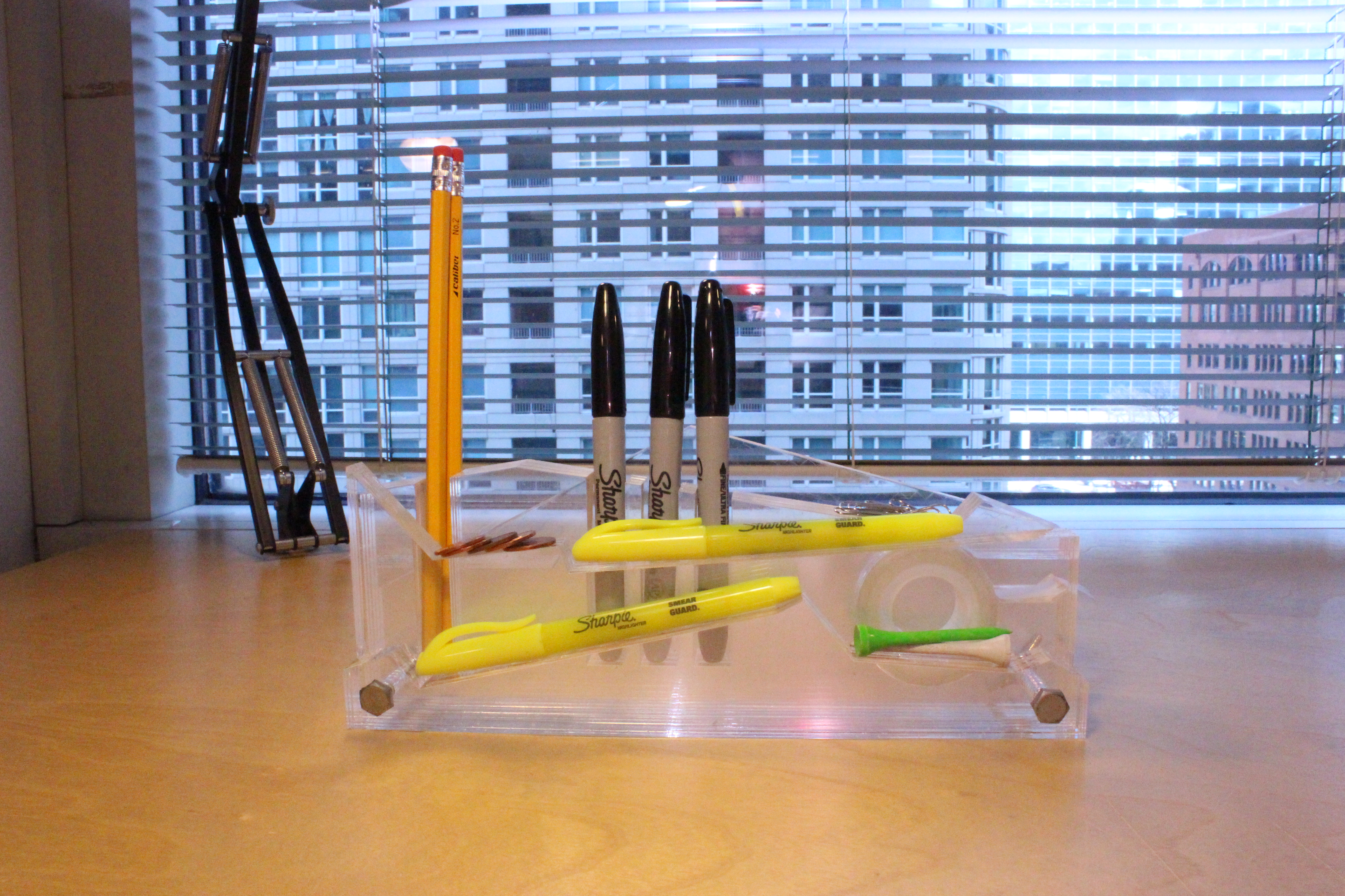 These new tools of today not only reduce the time required to test prototypes or get to results, they also open the doors to forms, shapes, and structures not easily achievable by standard hand-meets-Exacto methods. The focus is able to switch from capability of the creator to truly discovering proper suitability of products for end users. Below photos and reviews reveal the prototyping process I used to reach a final product for office organization.